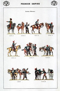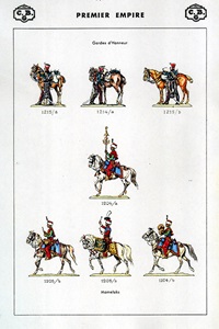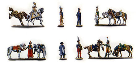 Auf dieser Seite werden einige Figuren bildlich vorgestellt. Oben ist eine der bekanntesten Serien, der abgesessene französische Generalstab abgebildet. Weiter unten ist eine Serie colorierter Figurenzeichnungen von Lucien Rousselot dargestellt. Einige bemalte Mignot-Figuren finden Sie in meinen Galerien hier und hier abgebildet.