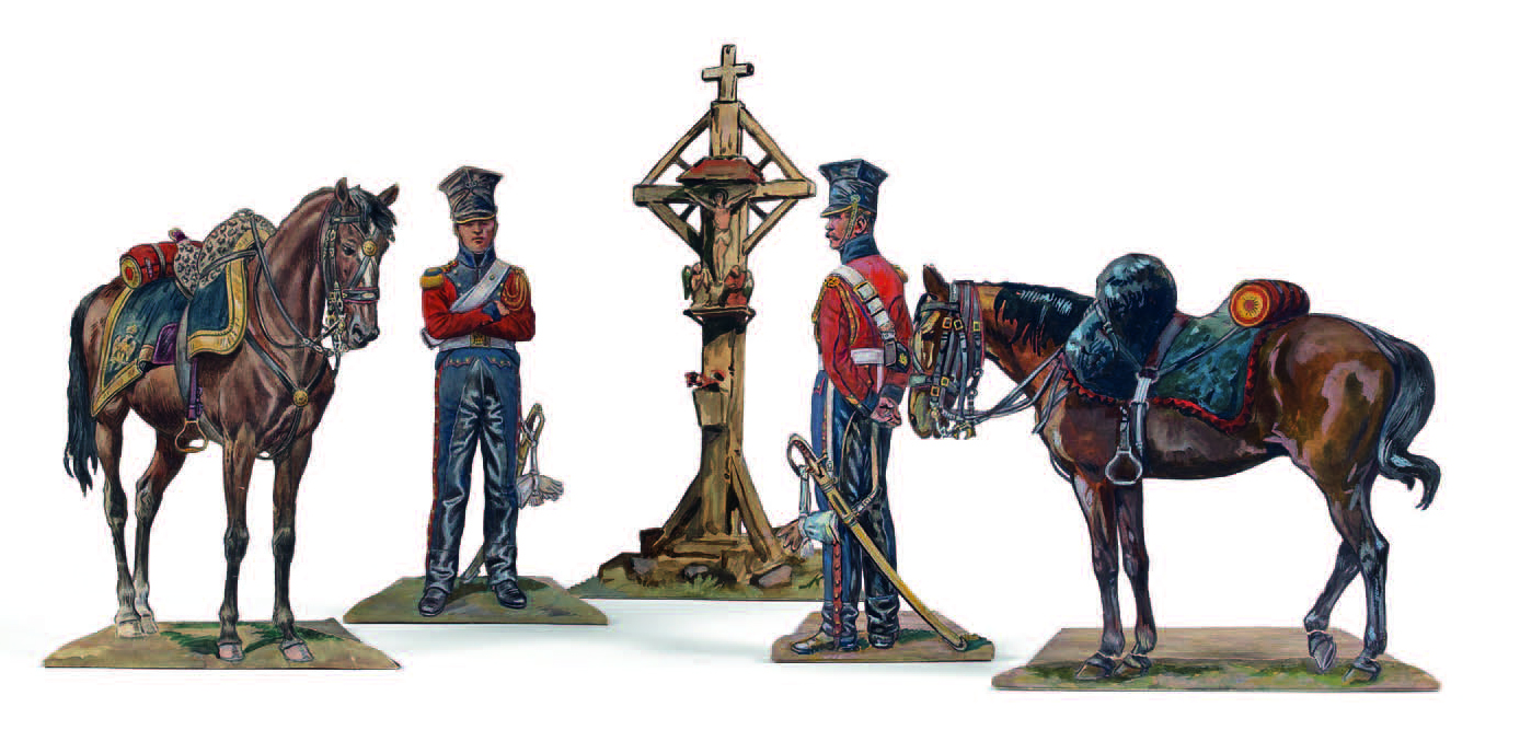 All figures have been designed and painted by hand, and cut out of carton. Then glued on somme thin Wood.