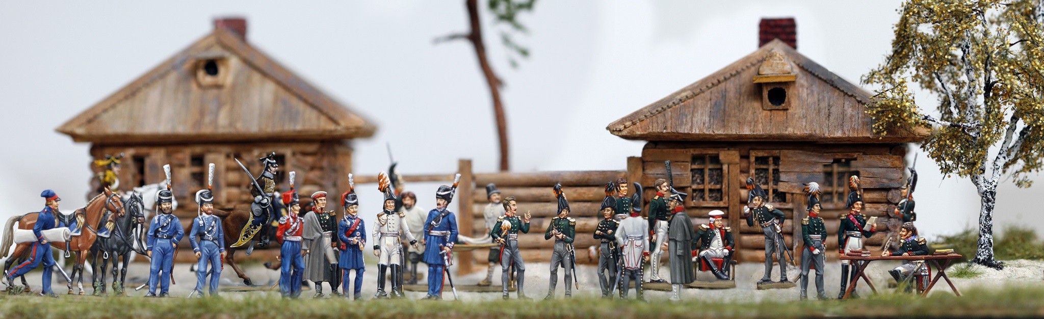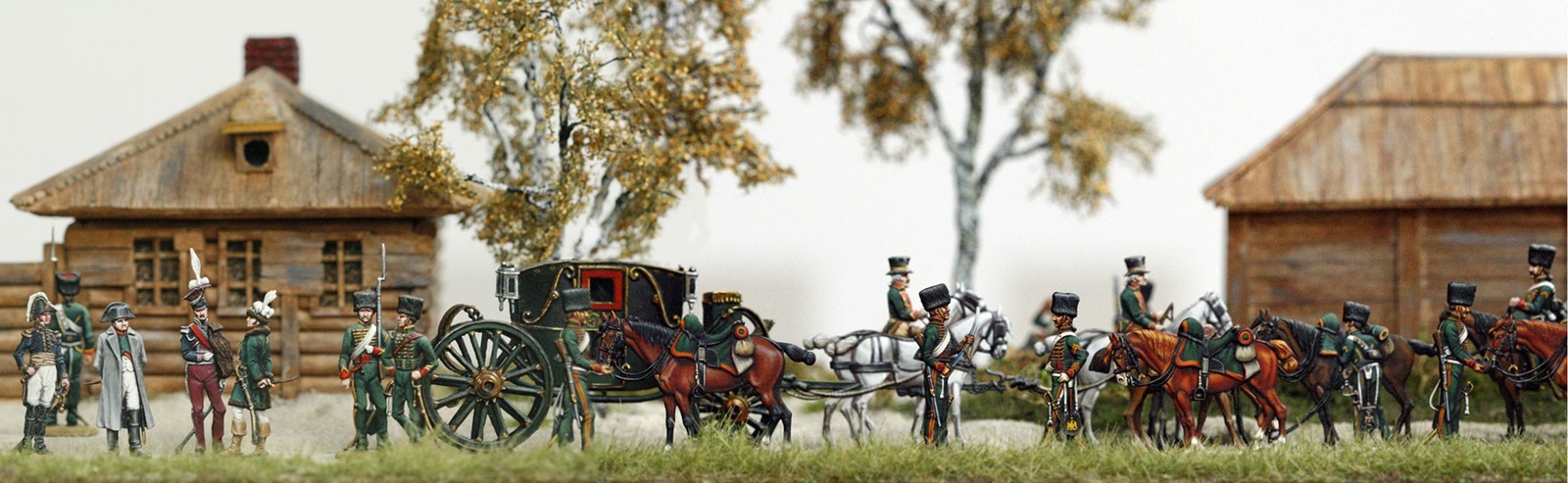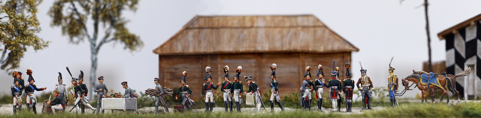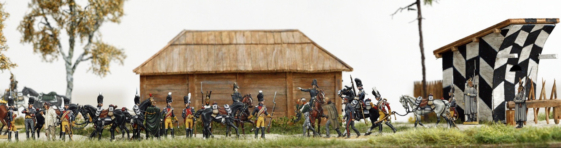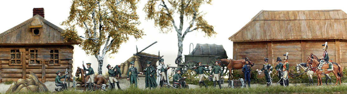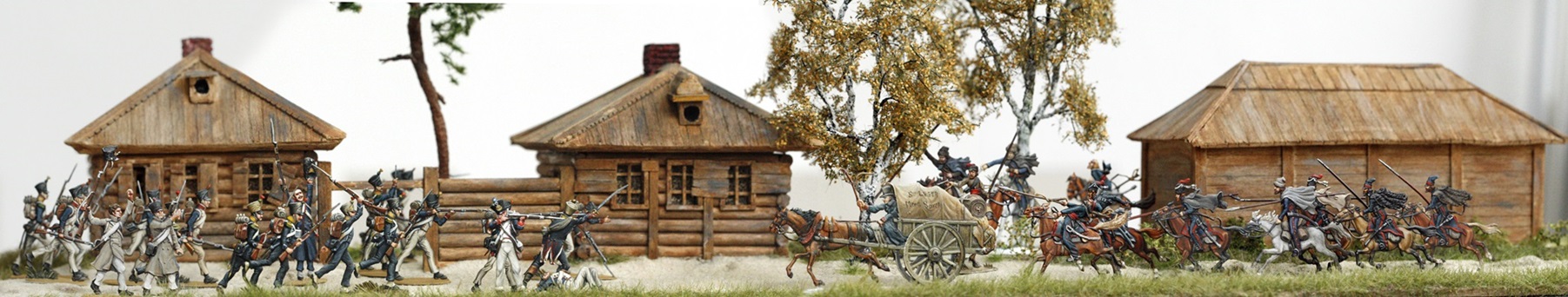 Buildings and scenery have been taken from pictures of Faber du Faur, an Artillery officer of Wurttemberg who depicted the French Army on his march to Moskou.