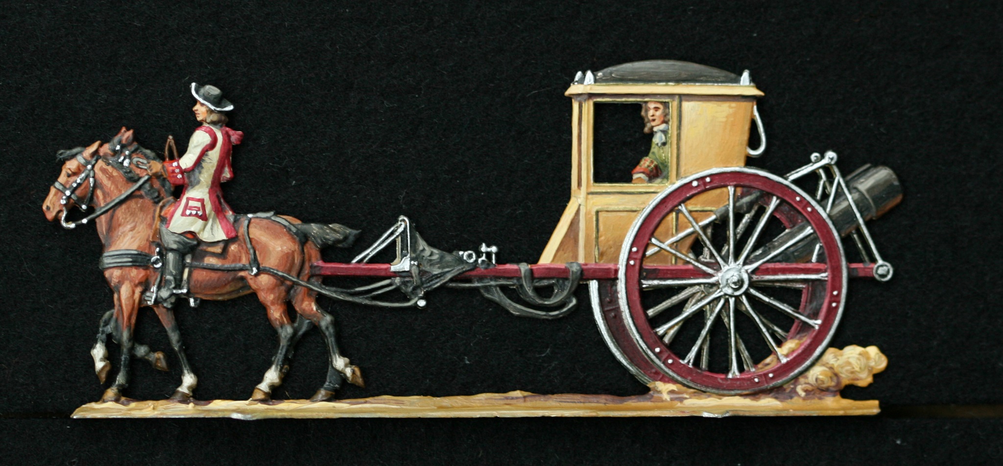 There is something unique in Douchkine´s painting of coaches and carriages. He used the "third dimension" of flats to achieve an effect not fully visible on a photo. For example when painting a wheel he shades the about 1 mm strong engraved surface inside of the wheel. It can be seen fairly good on the Soubise phaeton, but is of course only to be noticed in its full effect on the painted figure in nature.