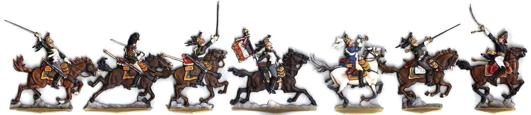 Sapper and eagle-bearer are converted figures. Trumpeter doesn´t belong to set either. It is converted from French 1798 Heavy-cavalry-trumpeter coming from Ochel.