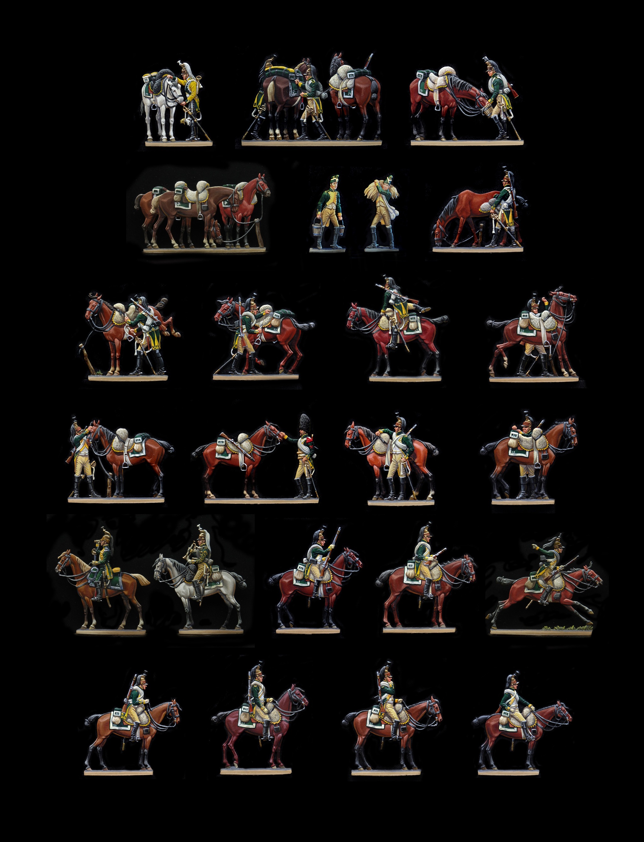 A new trumpeter was engraved after a design of Leliepvre, kindly given to me by M. Becavin, the owner of Quadri Concepts . The ascending officer is based on a drawing by Rousselot never engraved (originally a cuirassier from the Scheibert camp).