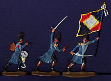 Für Feuer /Karree ist der haltende, von Ludwig Frank gravierte Offizier der Linieninfanterie sehr gut verwendbar, während die wohl schönste Fahne Mignot liefert.