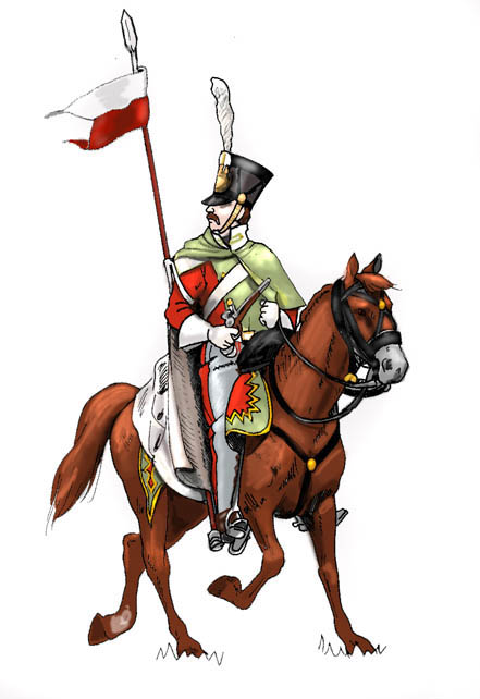 Prince Clemens Uhlans had red painted 2,50m long lances with, most probably, white over carmine pennons. 64 troopers were nevertheless issued carbines - whether they also carried a lance is unknown.