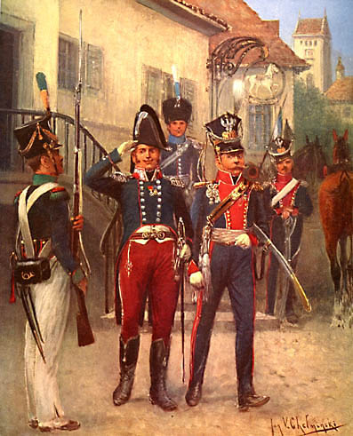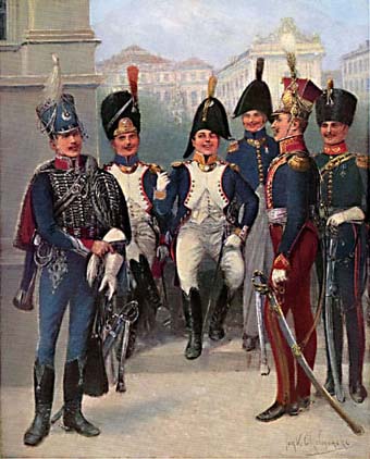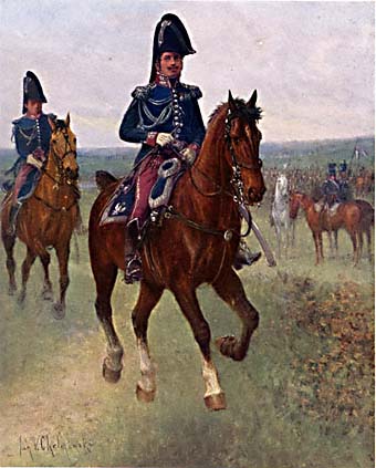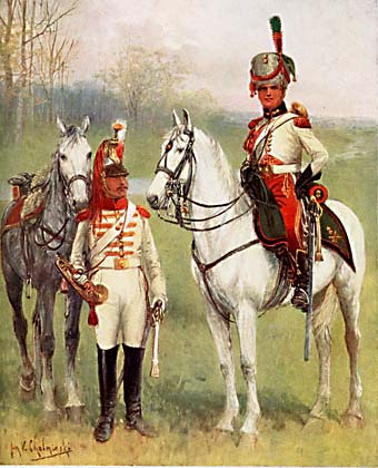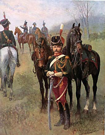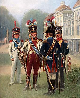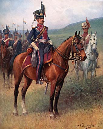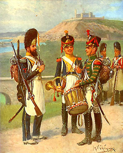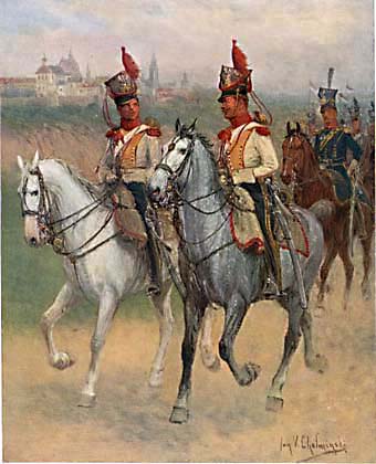 A. Malibran schrieb eine Geschichte dieser Armee. Jan V. Chelminski hat 48 Farbtafeln gemalt, von denen 32 in (Miniatur)-Galerien hier veröffentlicht werden. Ich habe die Tafeln ausgewählt, von denen ich annehme, dass sie am interessantesten sind, wobei ich Schulen, Sanitätsdienst oder bekannte Uniformen wie das 1. Lanzenregiment der französischen Garde ausgelassen habe.