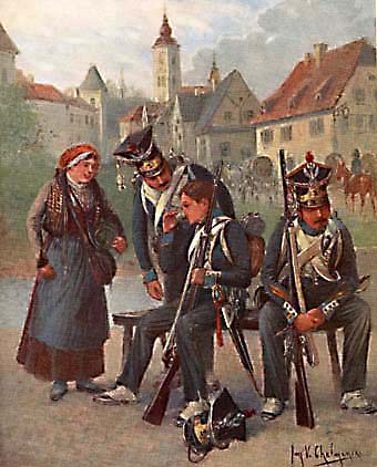A. Malibran wrote a history of this army. Jan V. Chelminski painted 48 colour-plates of which 32 will be published in (thumbnail)-galleries here. I choose plates I assume most interesting, leaving out schools, medical service or well known uniforms as 1. Lancer Regiment of French Guard.